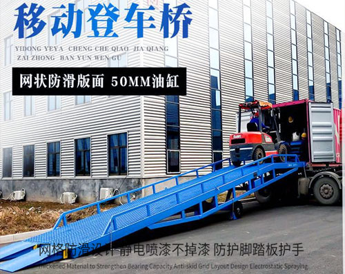 煙臺登車橋-煙臺集裝箱卸貨登車橋-物流登車橋用于無裝卸設(shè)備的貨臺及流動裝卸場所,是與叉車配合使用的貨物輔助設(shè)備。借助該設(shè)備,叉車能直接駛?cè)肫囓噹麅?nèi)部進(jìn)行批量裝卸作業(yè)。只需單人操作,不需動力電源,即可實物的安全快速裝卸。既可使您減輕勞動強度,又能成倍提高裝卸作業(yè)效率,加快物料流通速度,獲取更大經(jīng)濟效益。